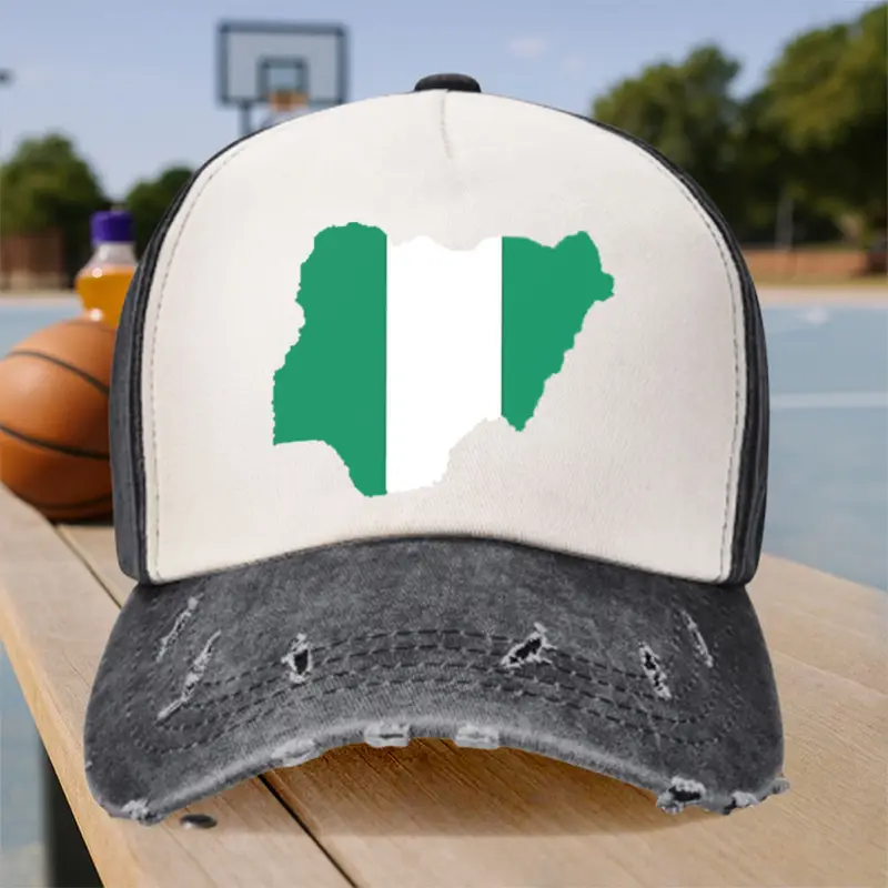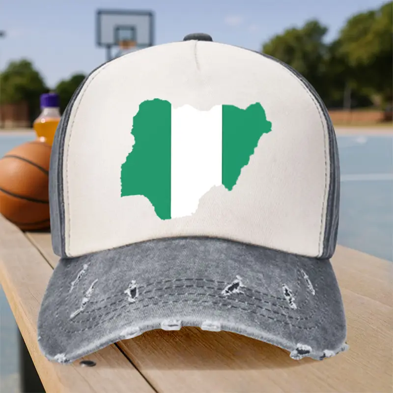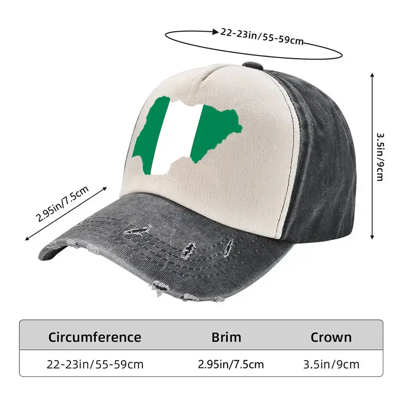 Men’s & Women’s Nigeria Flag Cap – Lightweight Snapback Closure Hat with Green & White Nigerian Map Print